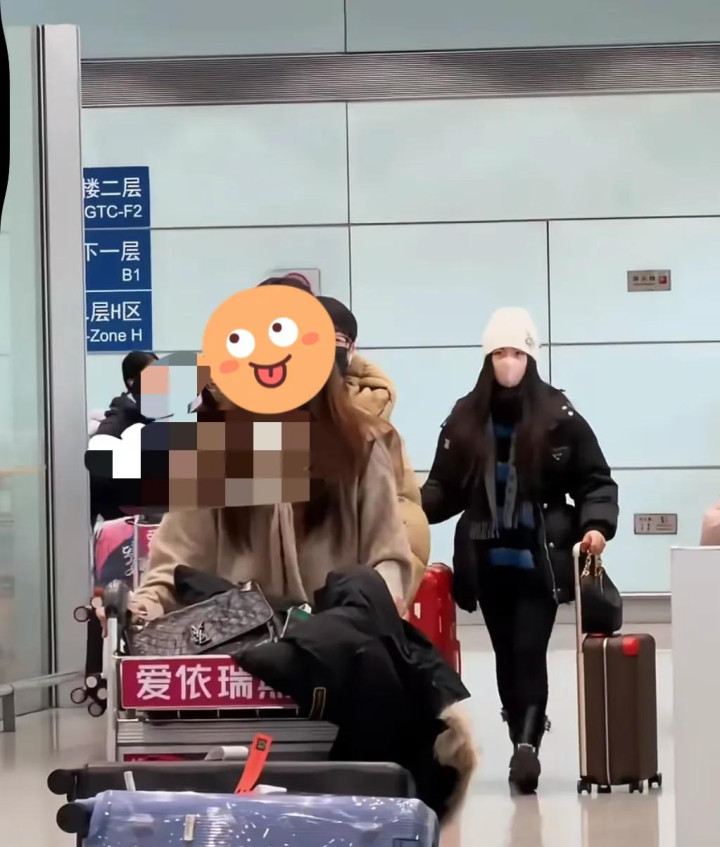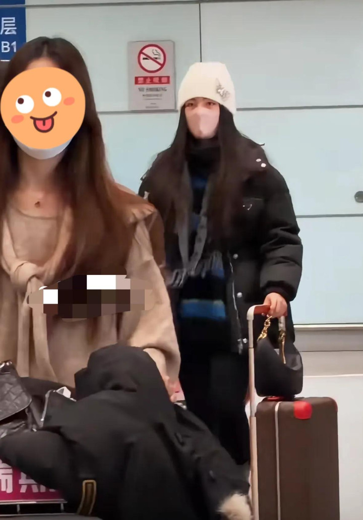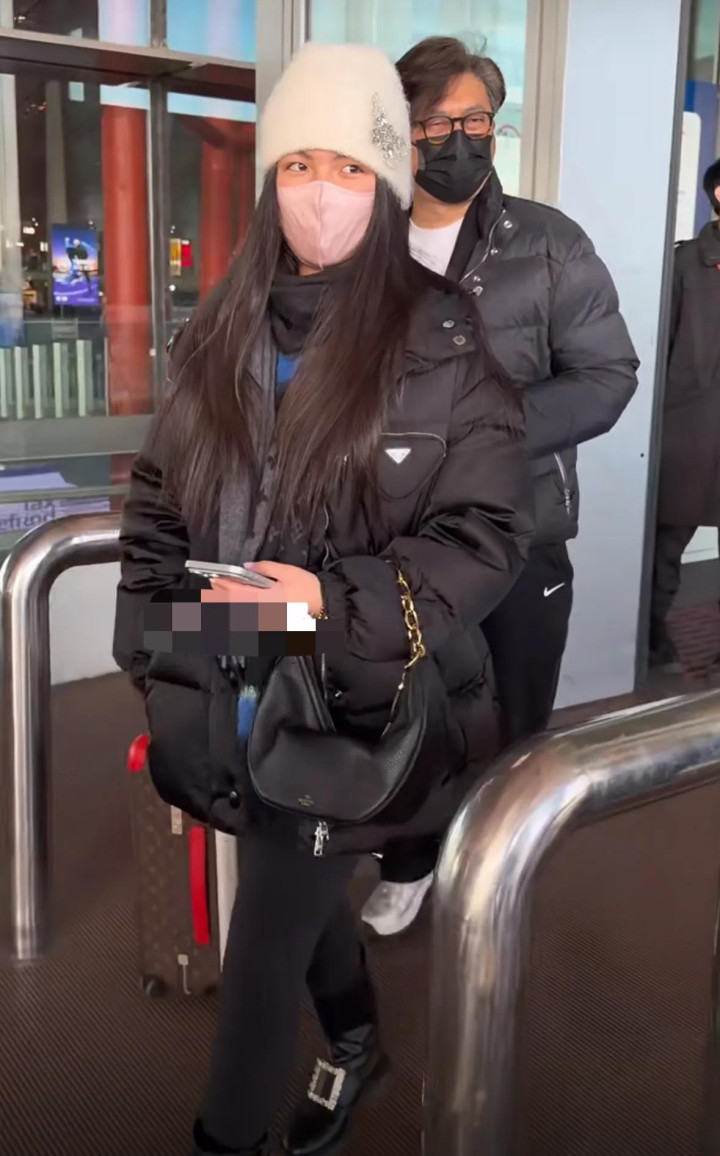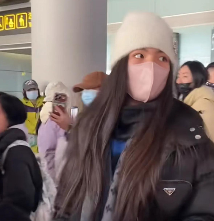 没多久,王诗龄就推着两个行李箱走出来了,她戴着白色的针织帽,穿的比较厚实,虽然不是明星,但确实气质出众,一出场就被认了出来。