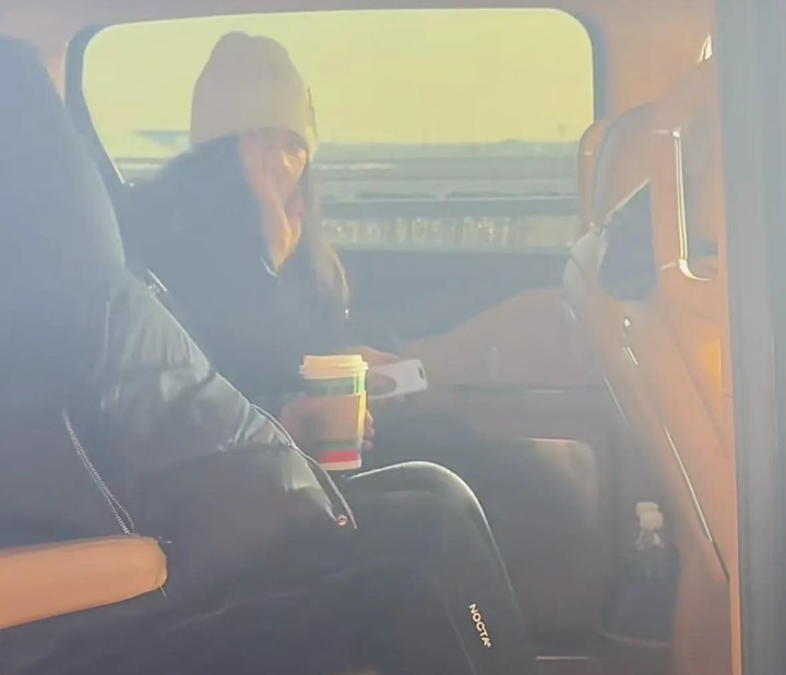 走到机场门口,来接他们的车已经等候多时了,随后父女俩上车离开,离开的时候还挥着手和大家告别。